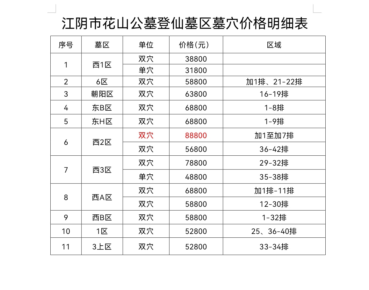 江陰市經營性公墓墓穴價格公示